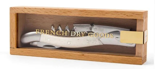 Inspired by the timeless craftsmanship of the neighborhood hardware store, the Orban & Sons Double-Hinged Corkscrew brings vintage character to a modern essential. Its natural bone handle feels sturdy and refined in hand, while the double hinge ensures smooth, effortless uncorking. Presented in a handsome wooden box with a sliding acrylic lid, it’s as giftable as it is practical.