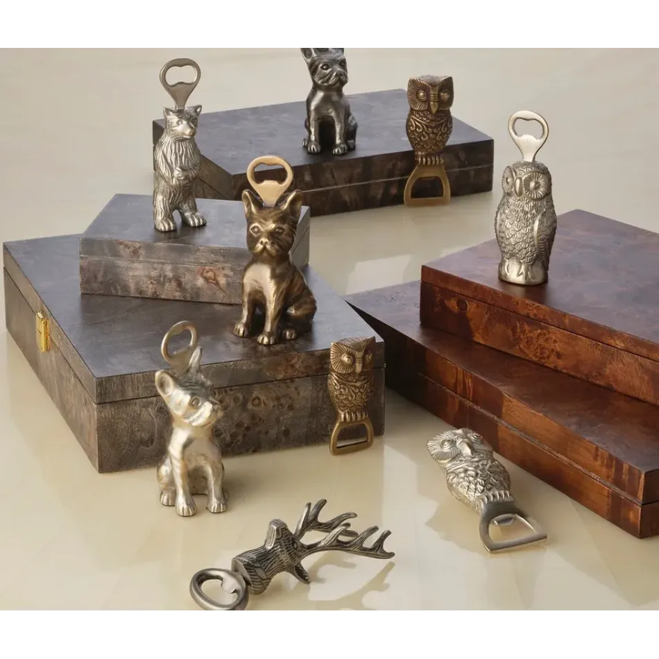 Our Marvin Metal Bottle Opener adds a touch of vintage sophistication to your home bar or kitchen. Crafted from durable metal with a tarnished silver finish, it’s as stylish as it is functional — the perfect accessory for effortless entertaining and everyday use.