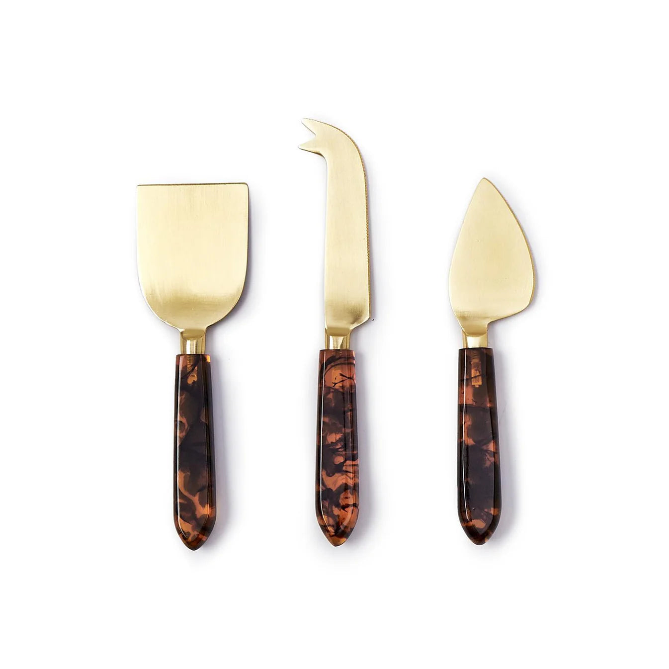 Style your cheese board with this sophisticated Tortoise Cheese Knives - a set of 3 knives, designed to balance timeless style with everyday functionality. Expertly crafted from high-quality stainless steel, each knife offers durability, corrosion resistance, and effortless slicing, while the richly toned tortoise-styled resin handles add warmth, character, and a comfortable grip.