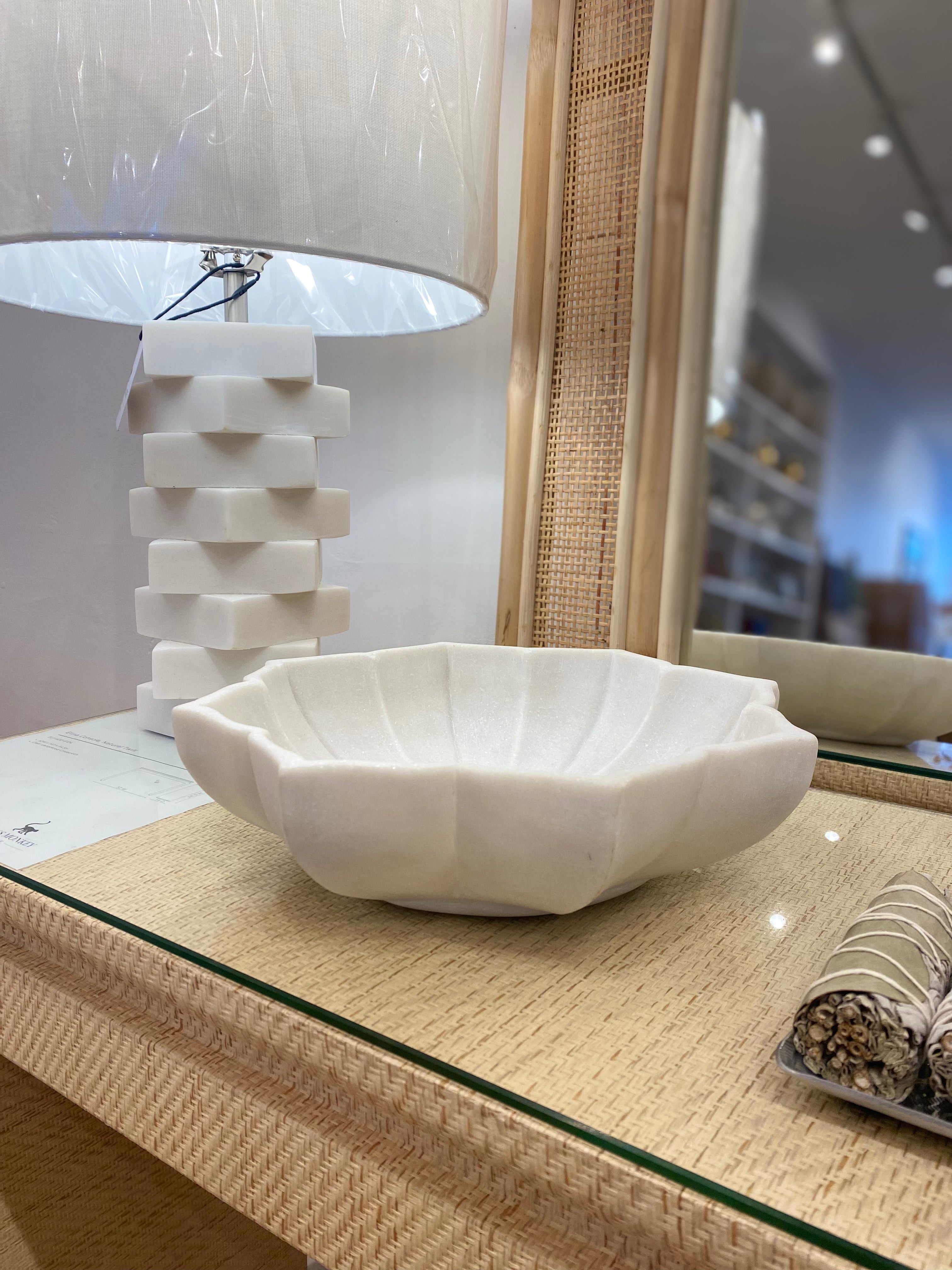 A beautiful marble bowl inspired by Water Lilly blooms. A perfect centerpiece, this simple yet elegant lotus bowl is expertly crafted by artisans in India. Use it to display floating flowers, candles, tealights, or potpourri. Because of the organic nature of marble, each piece will display beautiful variations in color and surface pattern.