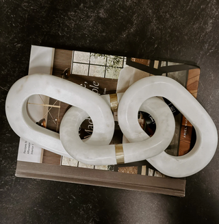 Perfect for adorning your coffee table, console, or display shelf, these marble links bring an element of remarkable elegance to any space. Whether styled as a statement piece on its own or paired with other modern accents, it will add a layer of timeless beauty and charm to your living room, office, or entryway. Ideal for lovers of artisanal craftsmanship and contemporary design, this piece makes a luxurious yet grounded addition to any home.
