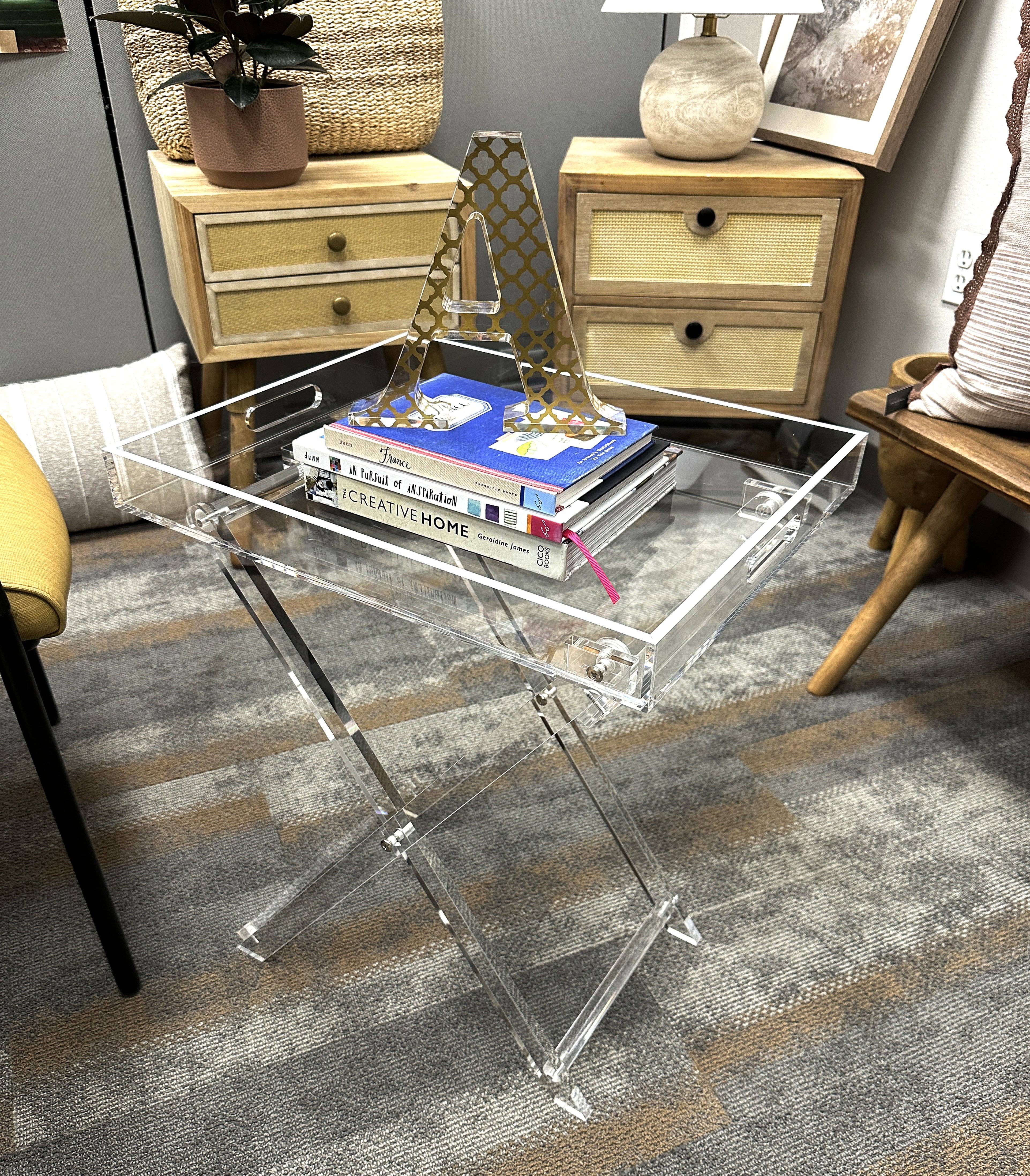 Acrylic Folding Tray Table with Silver Accents