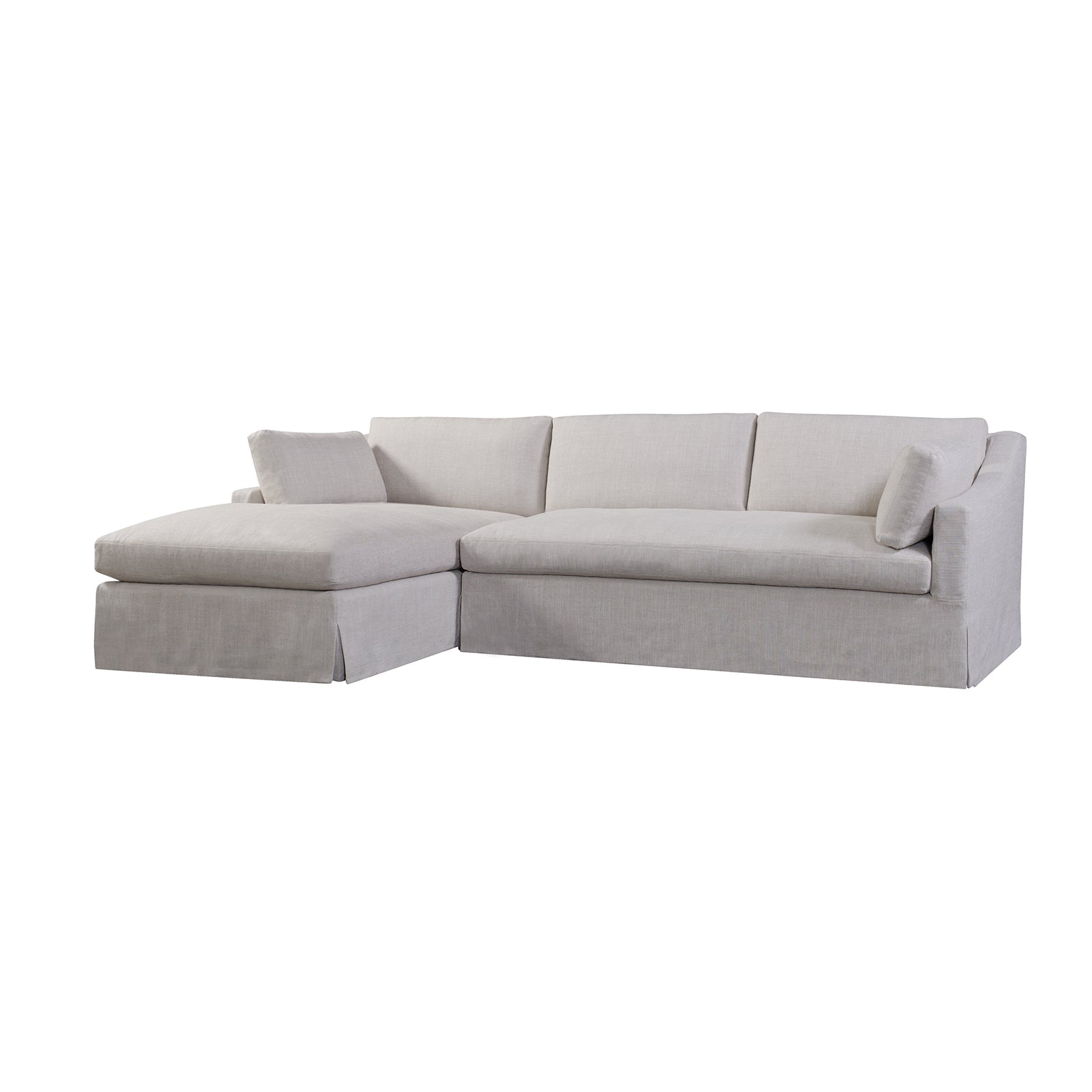Designed for both style and versatility, the Sectional from our Linen Slipcover Collection is available with either a right- or left-facing chaise to suit your space. Upholstered in performance linen, it offers a relaxed, tailored look that’s built to withstand everyday living. The blend-down cushions and 8-way hand-tied construction provide lasting comfort, while the slipcover design makes care simple. Handcrafted in North Carolina with weathered oak legs, this sectional is the ultimate blend of laid-back luxury and timeless craftsmanship.
