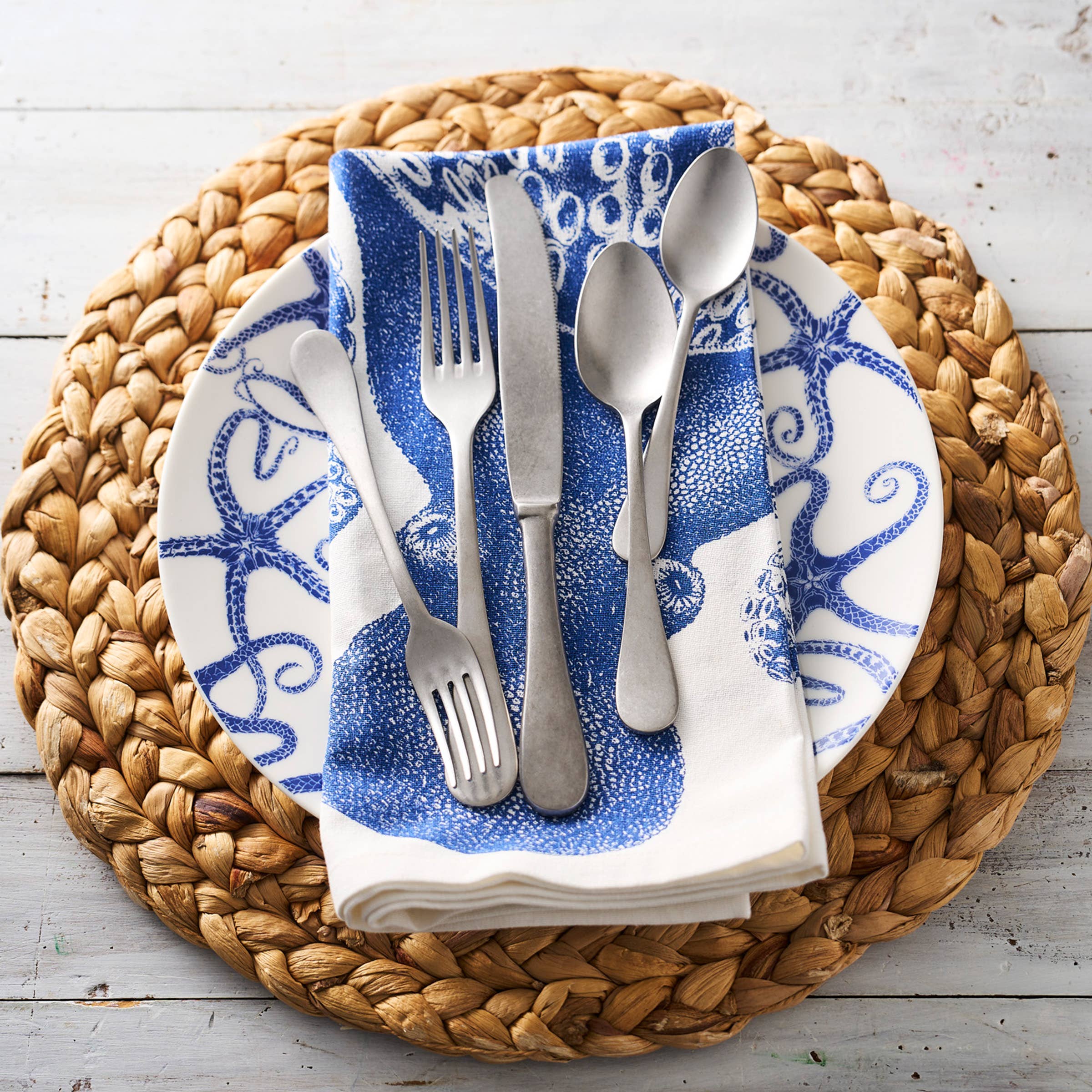 Truly in a league of her own, our favorite cephalopod has wrapped her arms across these linens, bringing a sense of deep-water whimsy to the table. Elegant, playful and beloved by all, Lucy the octopus adds a special touch in classic blue & white. We're betting these napkins will quickly become some of your favorites. Sophisticated yet whimsical, featuring our best-selling patterns. Plus, they get softer with each wash and don't require ironing. Simply fold them from the dryer, smooth them with your hand and you're ready to go. Offered as a set of 4, they're generously sized and add a fun, graphic accent to your table. Sold in Sets of 4 Dimensions: 22"W x 22"L 100% Cotton, Made in India