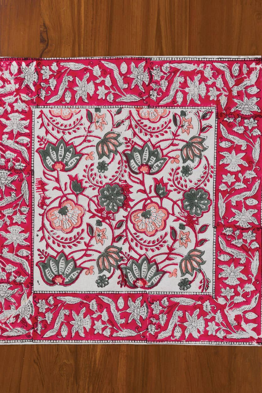 Set the scene for a table that tells a story. Our Red Floral Napkins bring warmth, artistry, and tradition to your dining experience. Each napkin is hand block printed by skilled artisans in Rajasthan, India, using hand-carved wooden blocks that have been passed down through generations. The result is a vibrant red and white floral pattern that transforms every meal into a celebration of craft and culture.