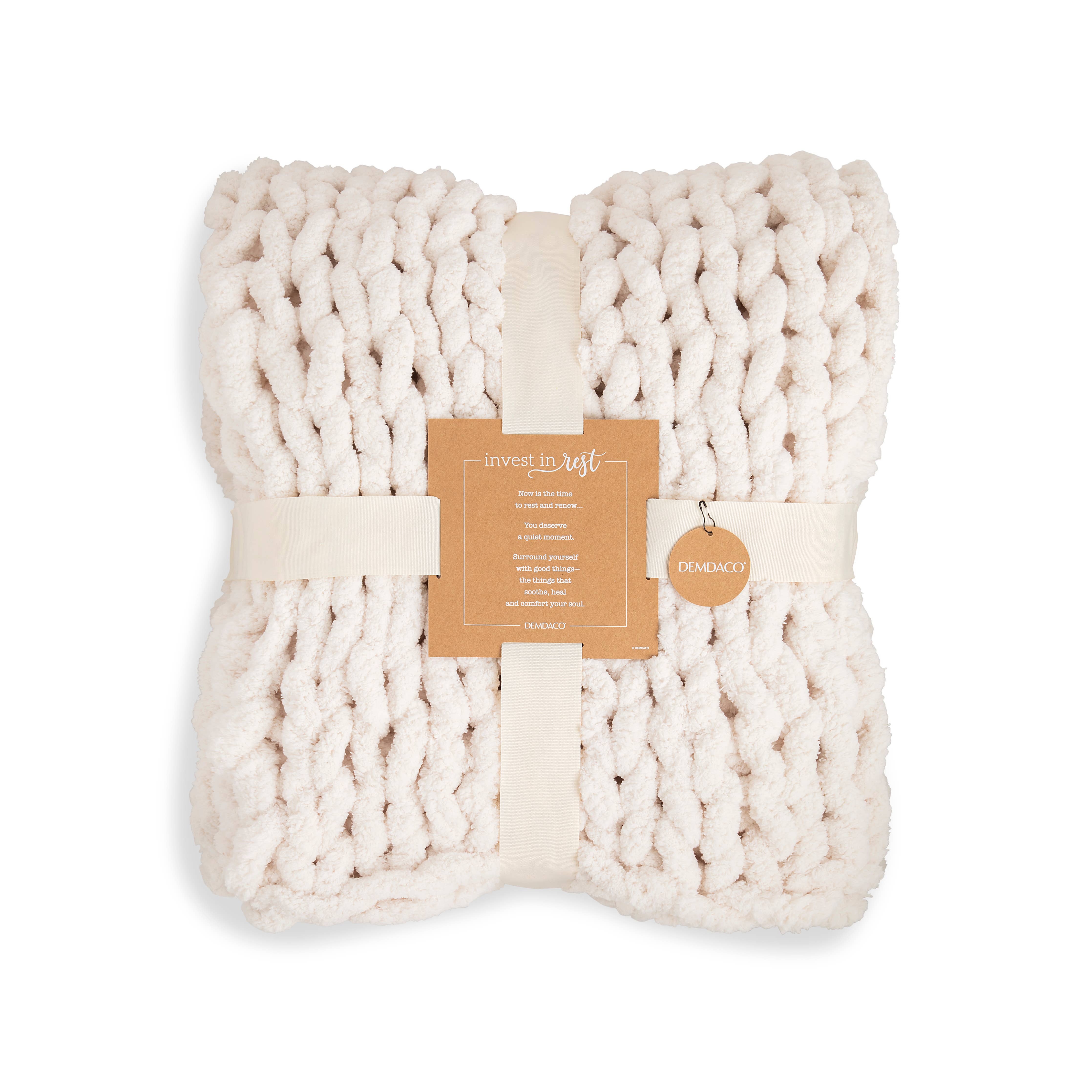 Get cozy with the Chunky Knit Throw Blanket - Cream. Providing ultimate comfort, this perfectly-sized 65"x 70" blanket is a household must have. A thoughtful gift for the homebody, snugglebug or yourself... because there's no such thing as 'too many blankets.'