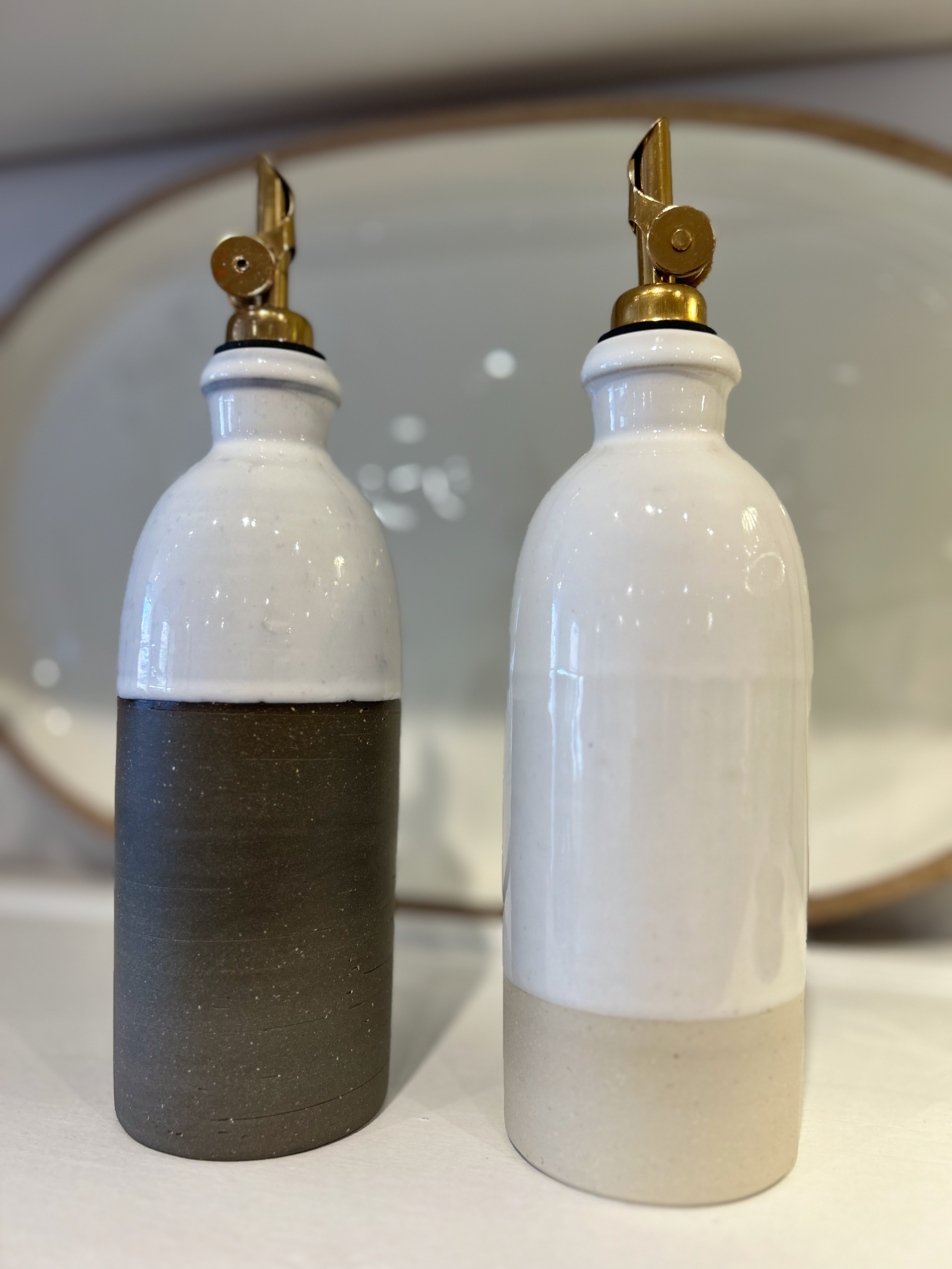 Introducing the Gray Oil Cruet, a beautifully crafted olive oil dispenser that captures the essence of coastal living. Handmade by Atelier Tréma, this exquisite piece reflects the Canadian pottery studio’s signature design—a perfect blend of artistry and functionality. Inspired by the weathered textures and muted tones of the seaside, this dispenser evokes the feeling of salt, wind, and sun. Each curve and finish on the piece is a nod to the studio’s deep connection to the Maritimes and East Coast horizons.