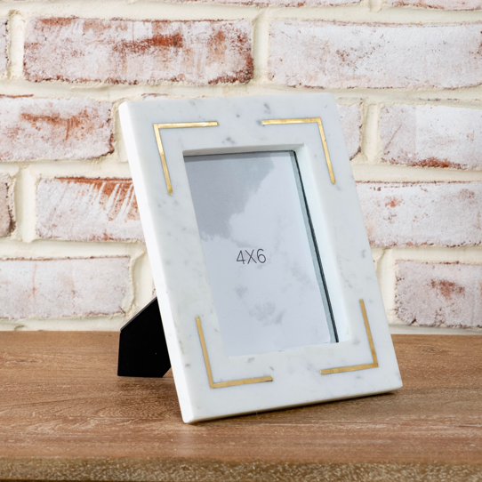 Add timeless sophistication to your space with our Marble Frame with Brass Inlay. Crafted from smooth white marble and accented with sleek brass detailing, this petite frame blends modern luxury with classic elegance. Perfect for showcasing your favorite photographs, it brings understated refinement to mantels, desks, and shelves alike. Whether styled alone or paired with other frames, it makes every memory feel a little more special.