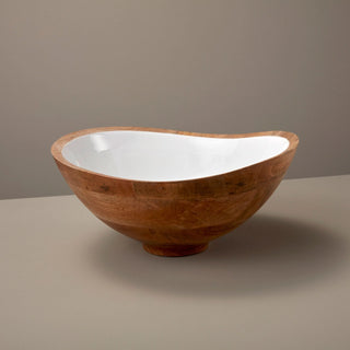 With its striking silhouette and smooth, flowing curves, this bowl transforms any table into a showcase of timeless elegance. No two pieces are ever alike—each is uniquely imbued with natural striations and warm, golden highlights, reflecting the individuality of the tree it came from. The interior is finished with a food-safe enamel coating, seamlessly blending function with artistry, making it perfect for serving fresh salads, vibrant fruits, or artisanal bread.