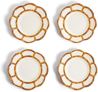 Elevate your dining experience with the this set of 4 Bamboo Salad/Dessert Plates. Designed to complement any tablescape, these plates seamlessly blend elegance with everyday practicality. Featuring a striking bamboo-style design, this set adds a sophisticated yet natural touch to your dining collection. Whether serving fresh salads, delectable desserts, or small bites, these plates offer both style and durability.